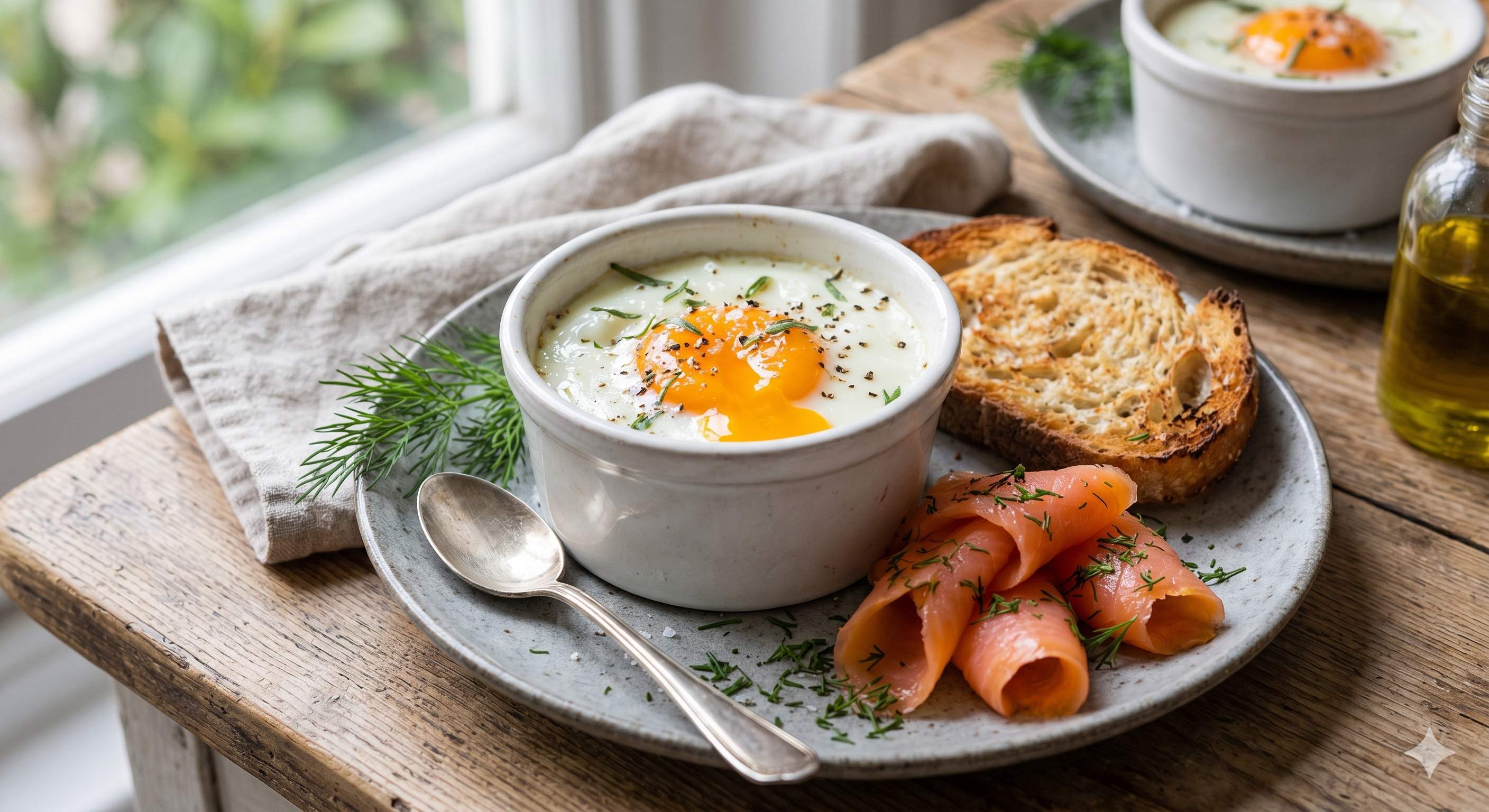 Delicados Huevos en Cazuela con Salmón y Eneldo