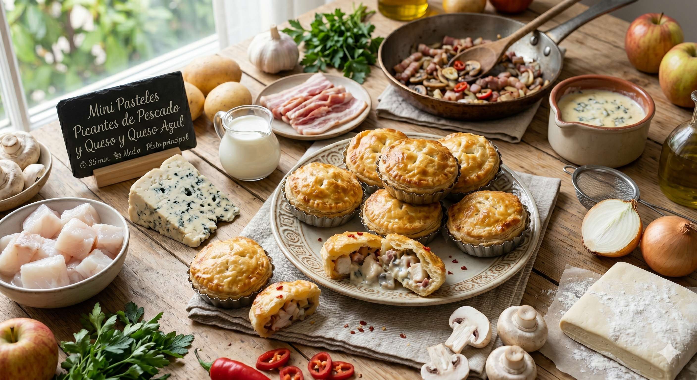 Mini Pasteles Picantes de Pescado y Queso Azul