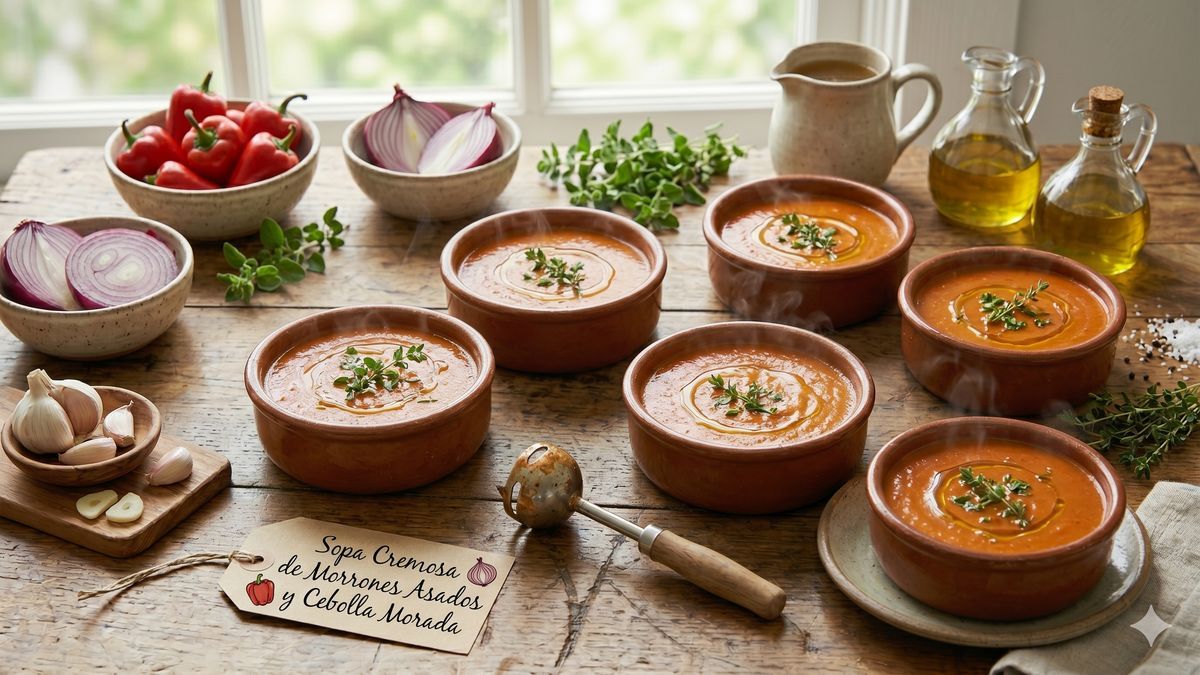 Sopa Cremosa de Morrones Asados y Cebolla Morada