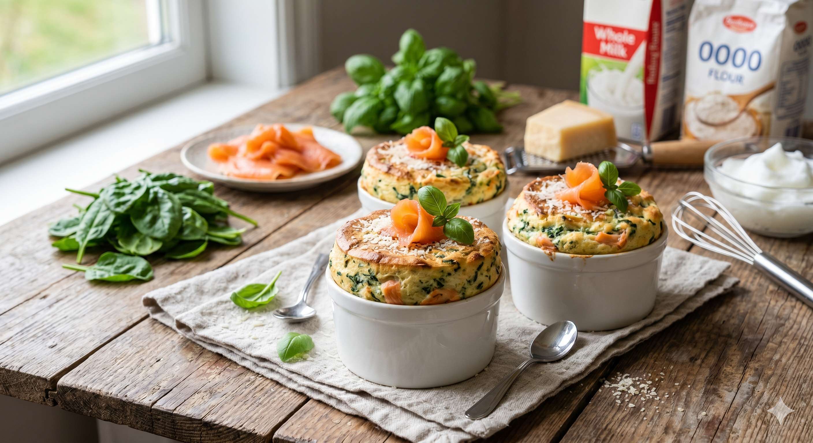 Soufflé Gourmet de Espinacas y Salmón Ahumado